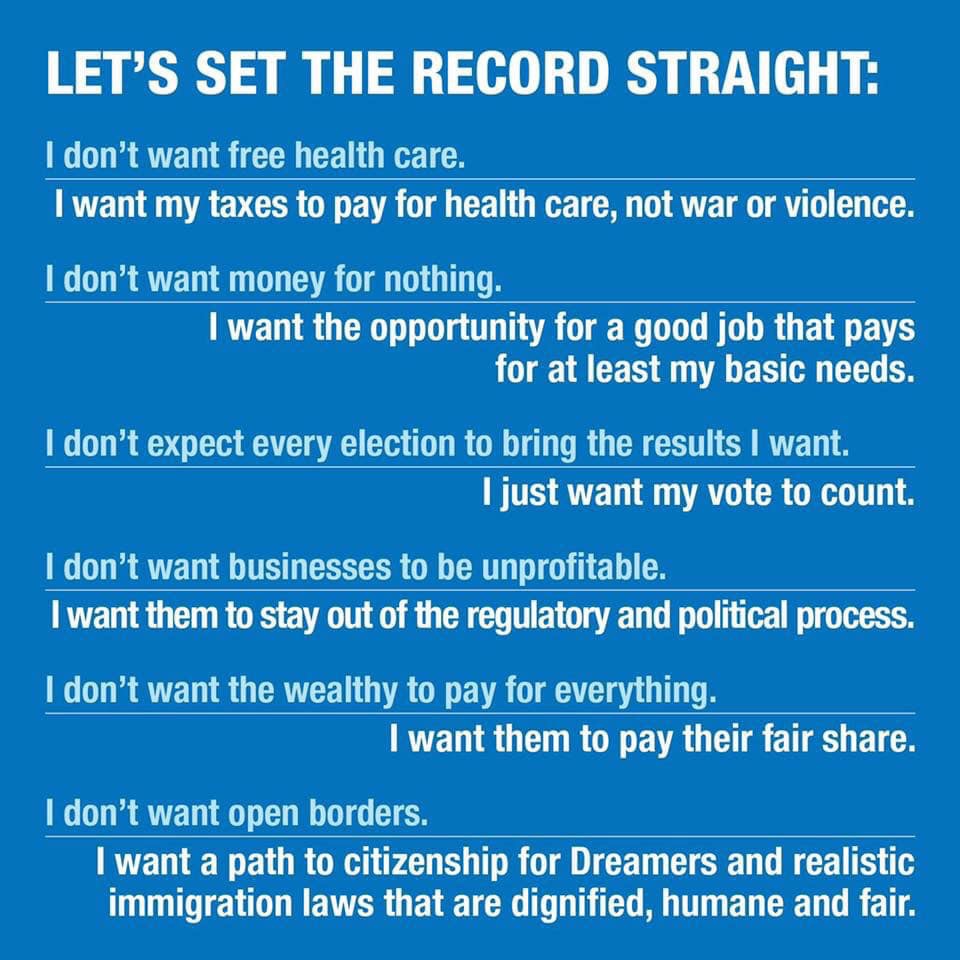 “I don’t want free healthcare; I want my taxes to pay for healthcare, not war or violence”.