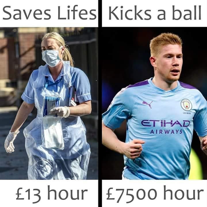 If the healthcare worker was paid what the footballer makes, healthcare costs would go through the roof, but that is beside the point.