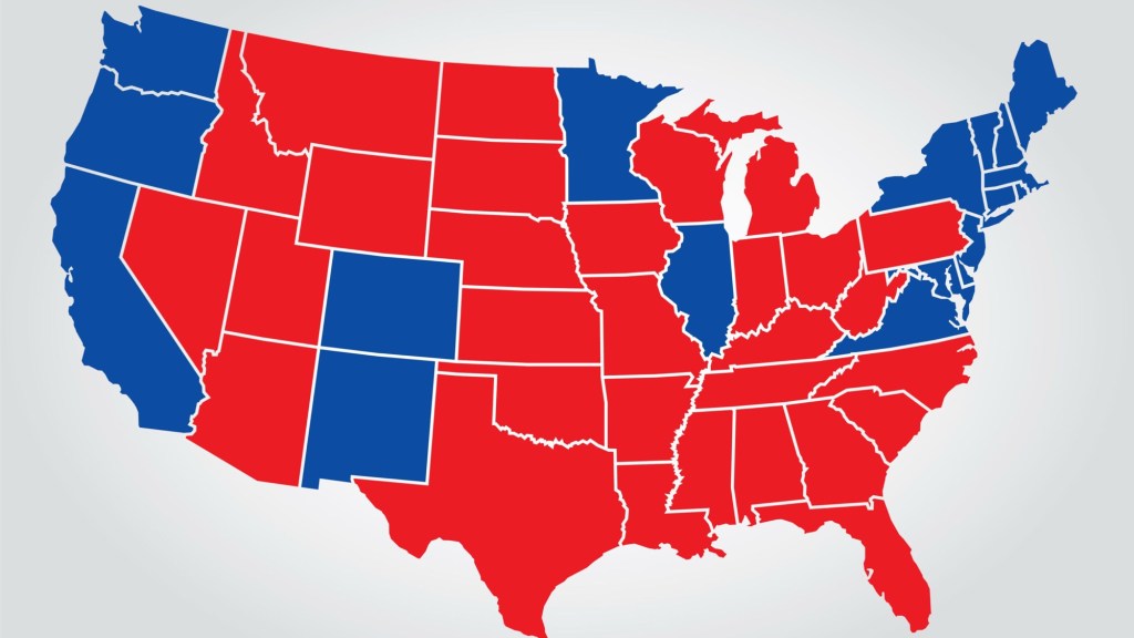 I preface this blog post by stating up front that the terms “blue state” and “red state” are just another way to label states with populations that are more conservative-minded (red) or liberal-minded (blue) and tend to consistently vote based upon these ideological tendencies (Democratic blue or Republican red).