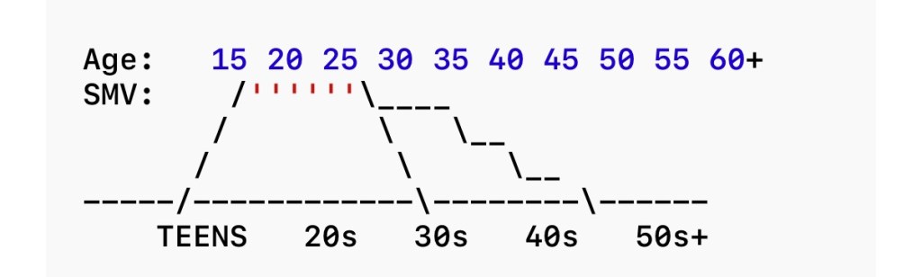 📊 THE FEMALE SMV CURVE (TEXT VISUAL)